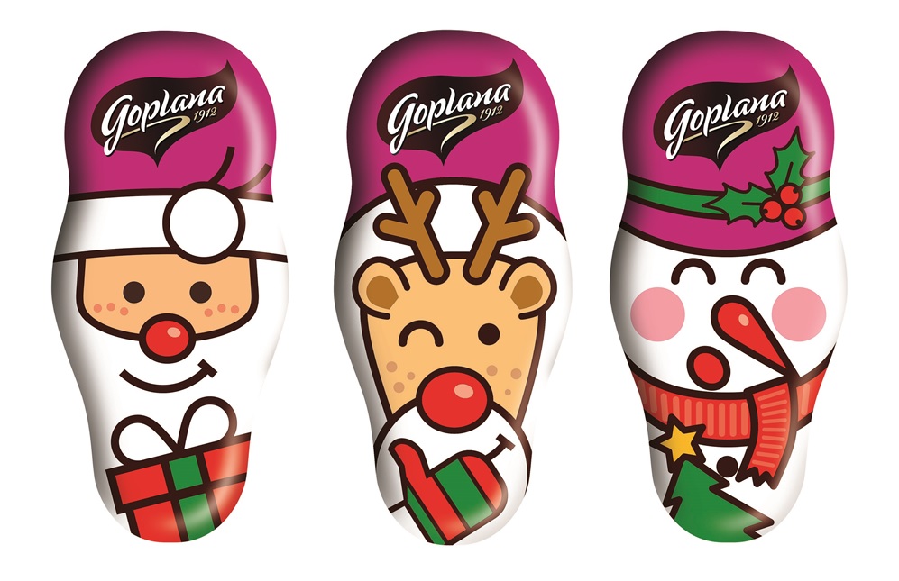 Kolekcja 9 figurek z wizerunkami Mikołaja, renifera i bałwanka to idealny słodki drobiazg do paczki dla dzieci lub ozdoba świątecznego stołu. UWAGA! Produkt „Goplana Mikołaj nadziewany o smaku karmelowym 30g” został wyróżniony przez konsumentów tytułem Hit Handlu 2020, jako najlepiej sprzedający się produkt w kategorii „Figurki czekoladowe”.