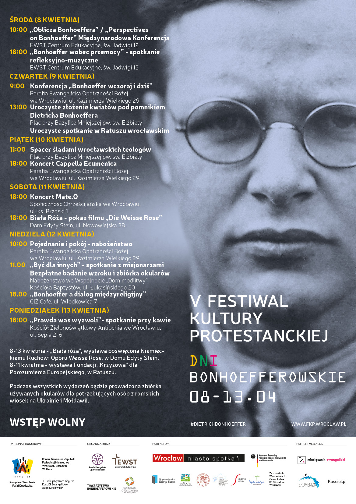 Festiwal, który odbędzie się w dniach 8-13 kwietnia 2015 roku, został w całości poświęcony Dietrichowi Bonhoefferowi, stąd też tegoroczna edycja nosi podtytuł ?Dni Bonhoefferowskie?. Wśród licznych wydarzeń znalazły się między innymi konferencje naukowe, wystawy, koncerty, spotkania o charakterze popularno ? naukowym i kulturalnym oraz uroczystość pod pomnikiem Dietricha Bonhoeffera we Wrocławiu.
